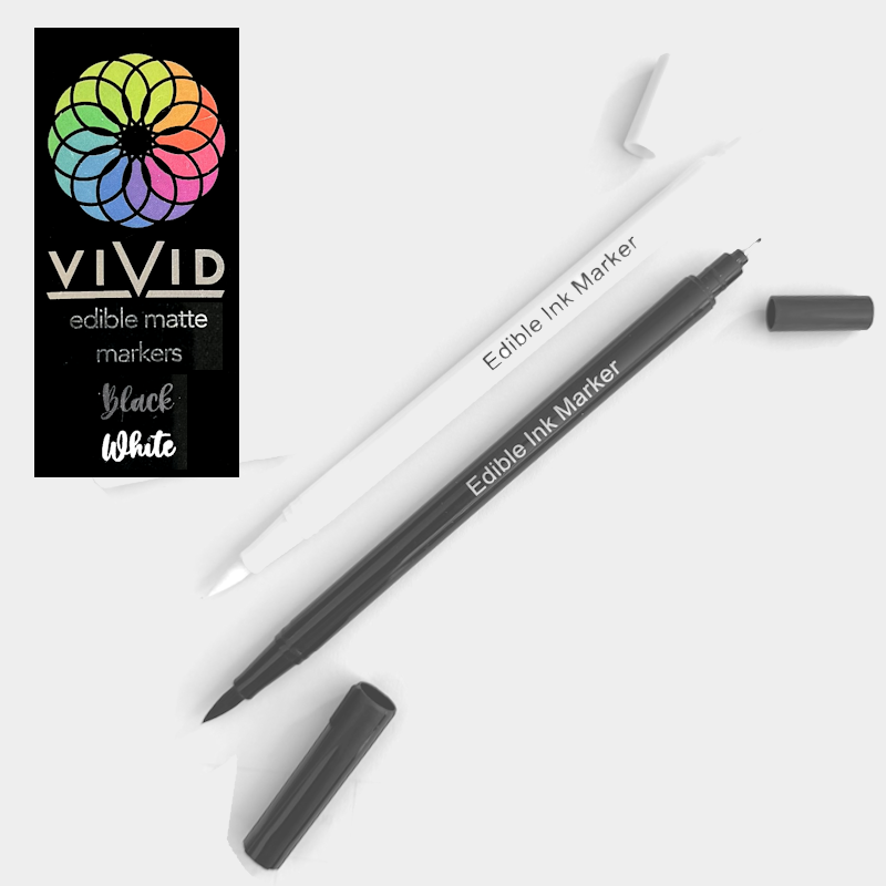 This set of Edible Pens come with 1 black and 1 white pen - doublde sided nibs - provide narrow at one end and wider at the other.